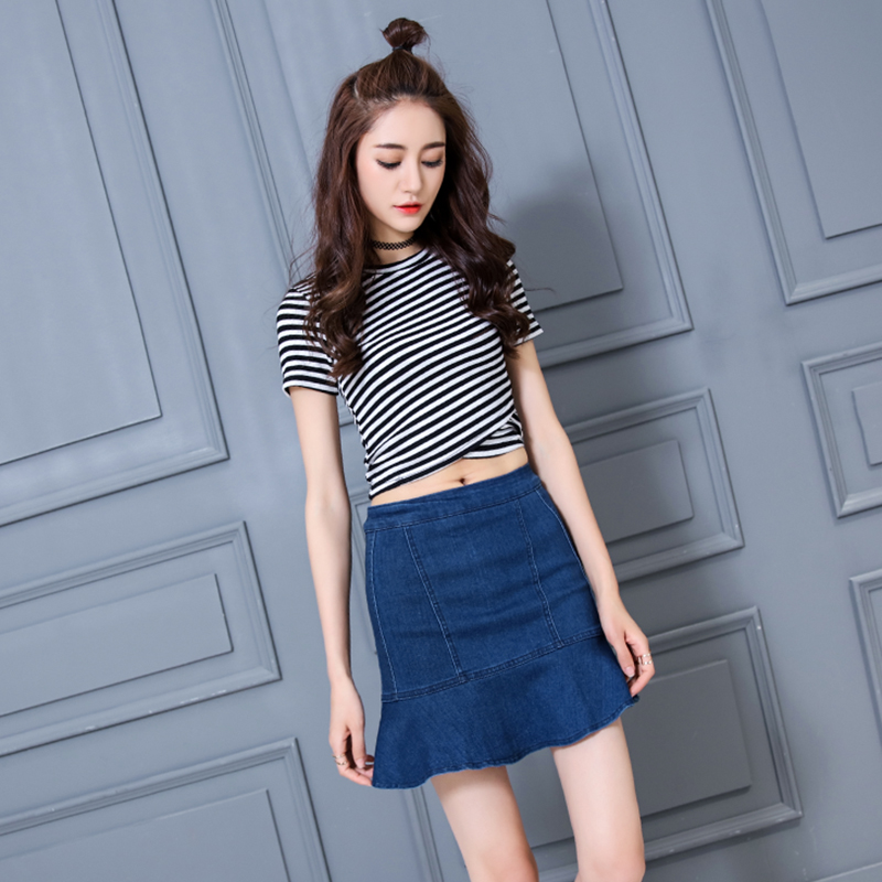 / 荷葉邊包臀牛仔褲裙女高腰牛仔半身裙a字魚尾裙半裙顯瘦短裙裙子