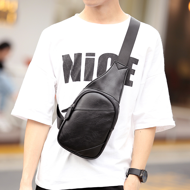 / 新款胸包時尚復古小皮質胸包戶外休閑男士小背包韓版男包