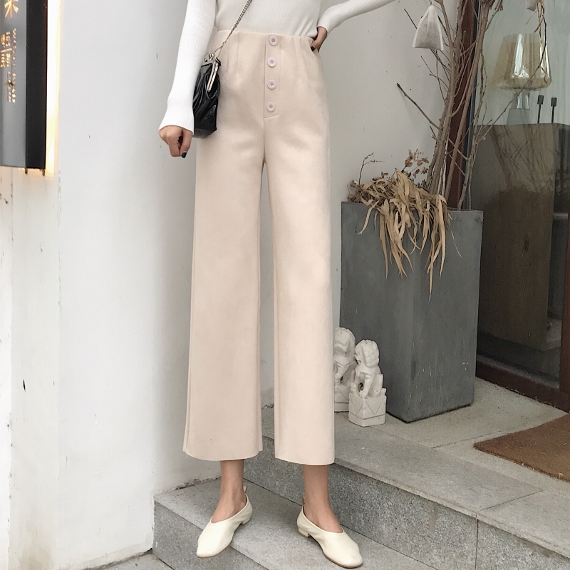 港味復古chic女褲子2018新款高腰休閑褲麂皮絨時尚闊腿褲直筒褲潮