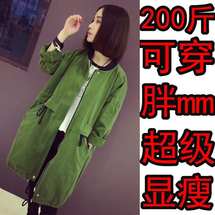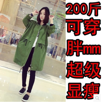 大碼女裝春裝200斤胖mm寬松中長款風衣外套胖妹妹棒球服開衫夾克
