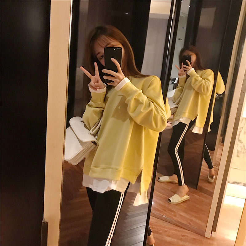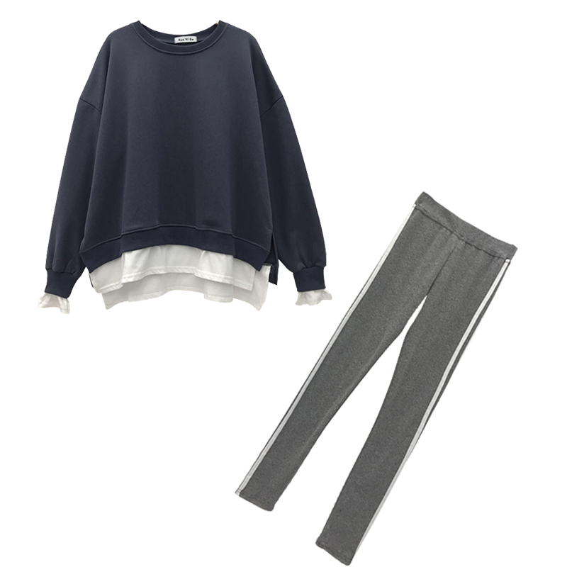 / 新款韓版時尚套裝寬松慵懶風拼色衛衣緊身小腳褲長褲子chic兩件套
