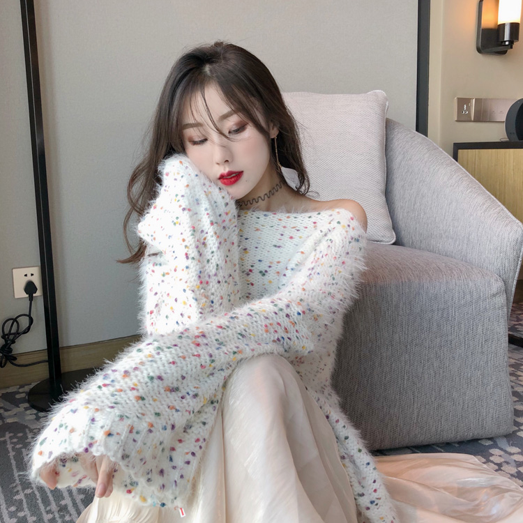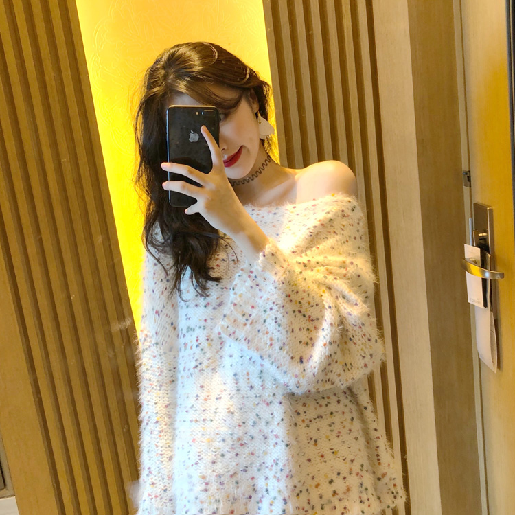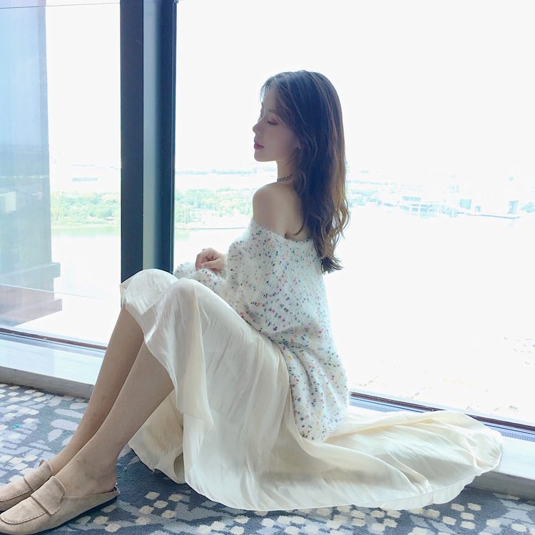 網紅同款秋裝女2018新款套裝慵懶風多彩毛衣+浪漫絲滑不規則長裙