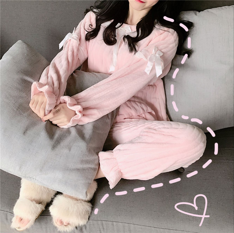 2018新款韓版甜美可愛學院風秋冬加絨加厚舒適睡衣睡褲家居服套裝