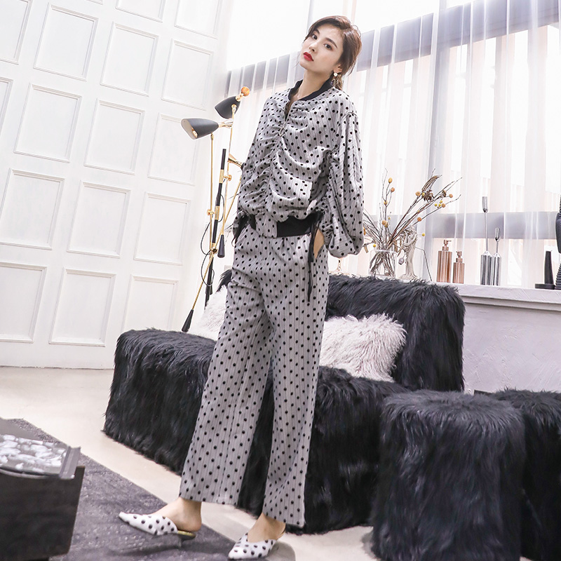 / chic早秋套裝時尚女兩件套氣質洋氣夾克女裝闊腿長褲新款時髦顯瘦
