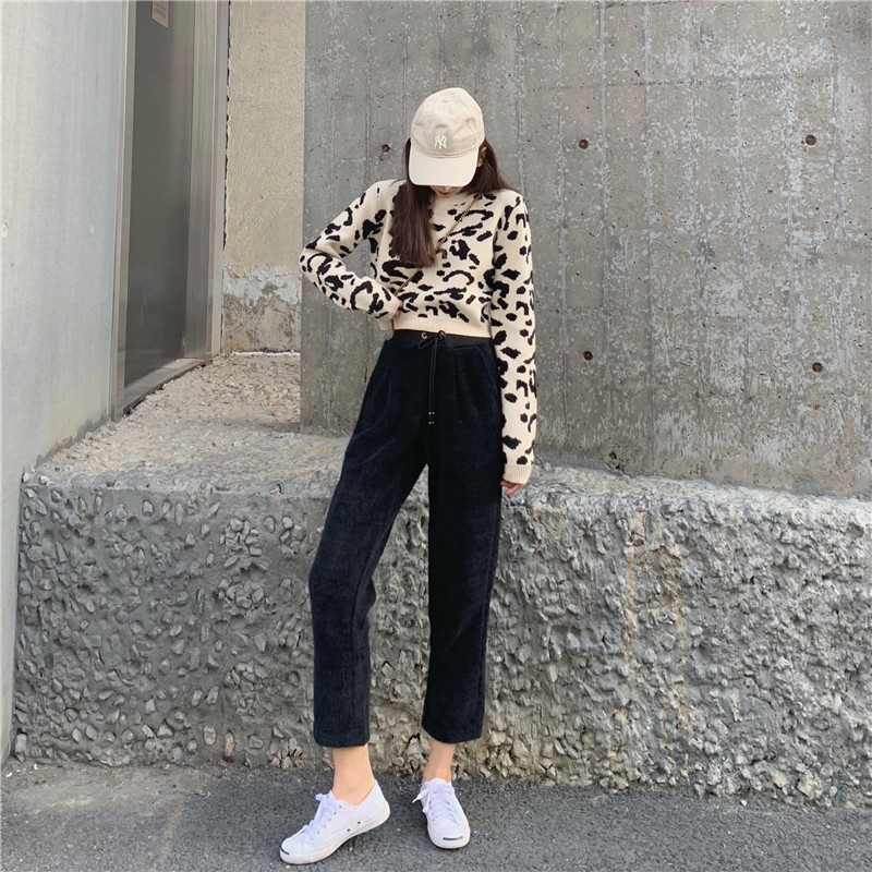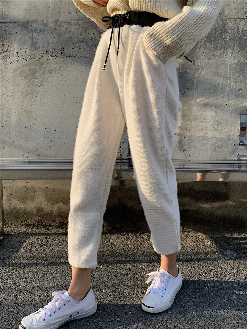 褲子女韓版2018秋冬新款松緊時尚百搭高腰九分煙管蘿卜褲哈倫褲潮