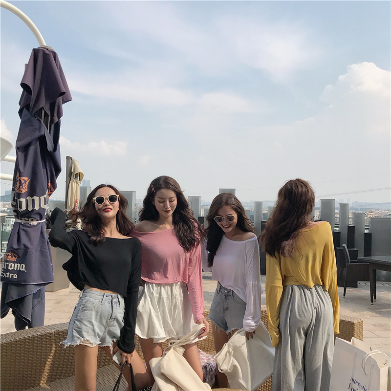 復古韓國chic風純色百搭防曬長袖上衣寬松t恤女2018夏季新款潮