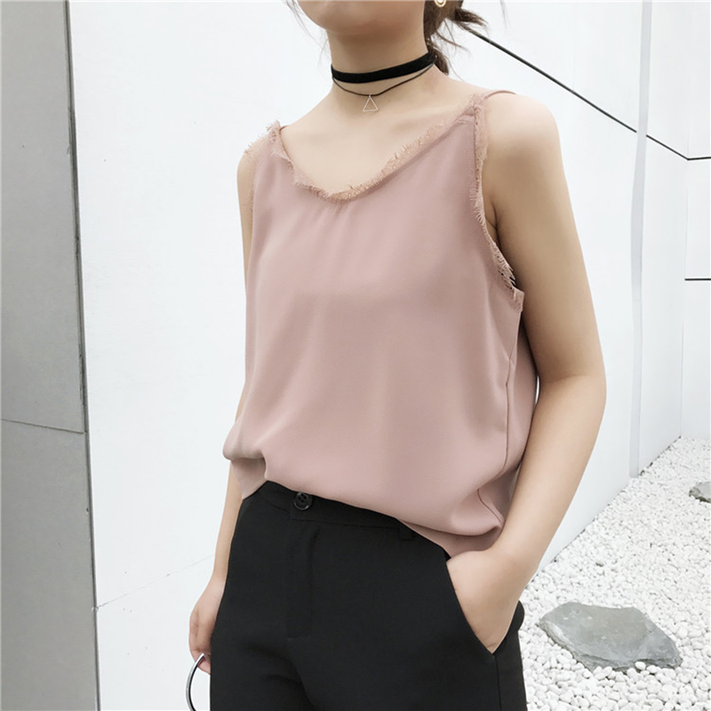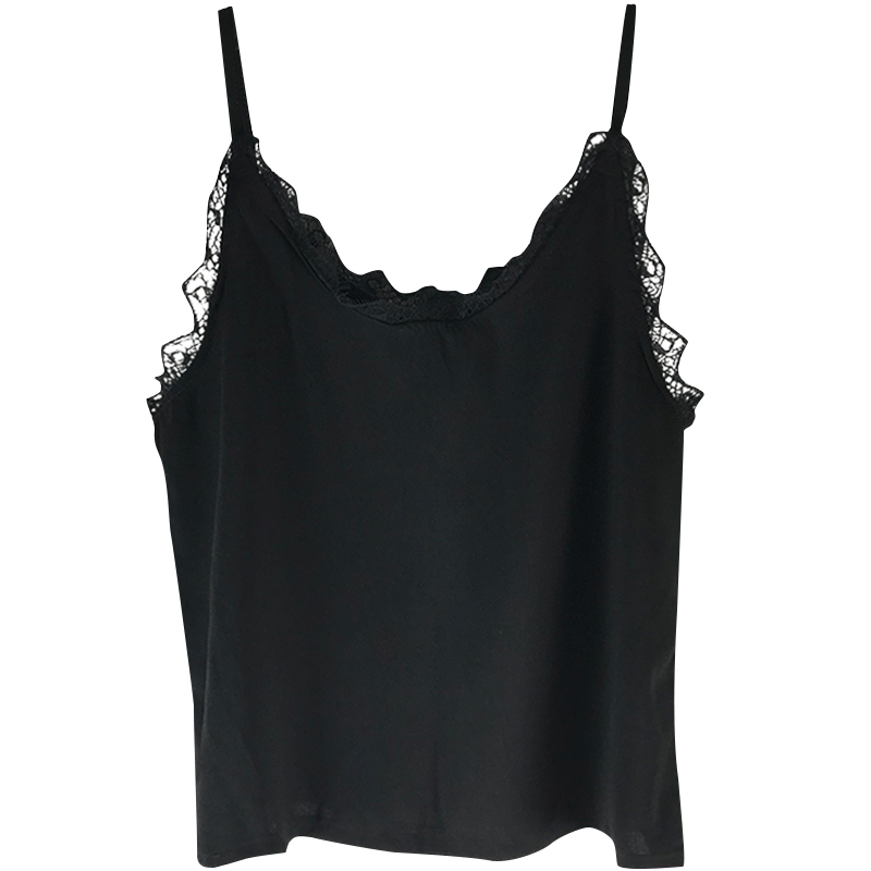 / 春裝新款女裝韓國chic風純色睫毛蕾絲V領吊帶衫氣質打底小背心女