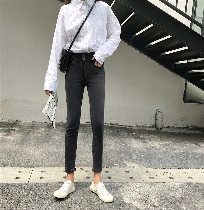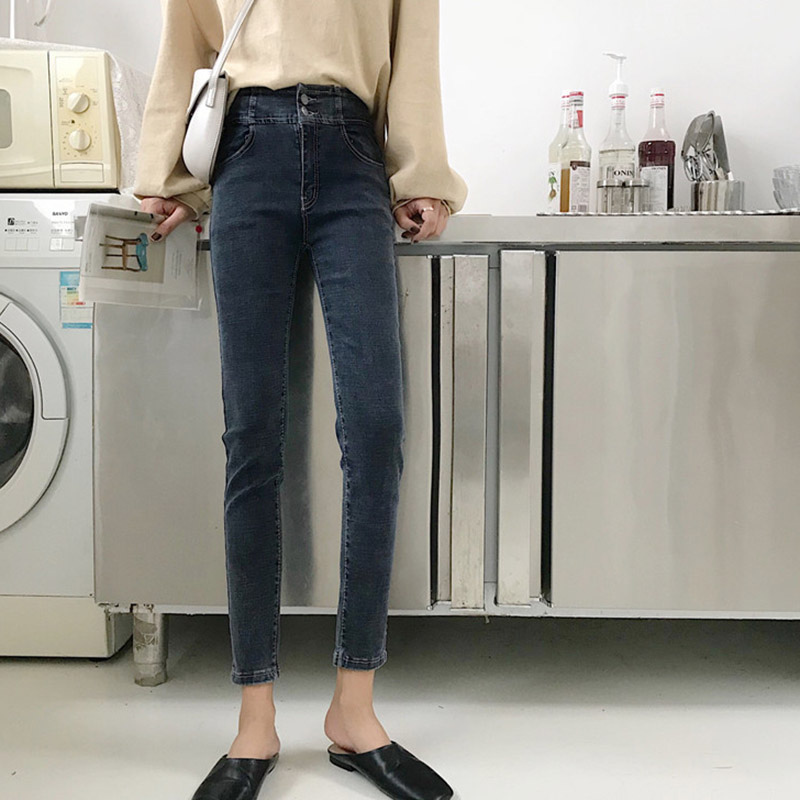 褲子女秋2018新款網紅緊身高腰牛仔褲女韓版顯瘦修身小腳褲鉛筆褲