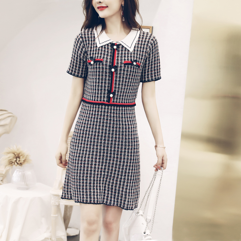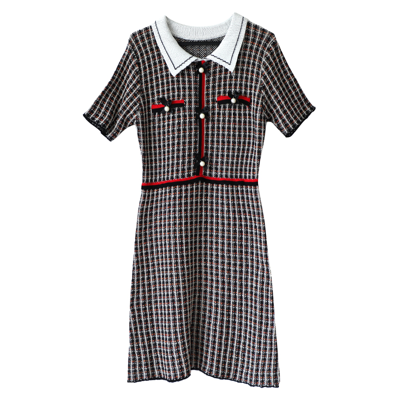 2018女夏新款名媛聚會針織收腰polo裙子港味復古中長款chic連衣裙