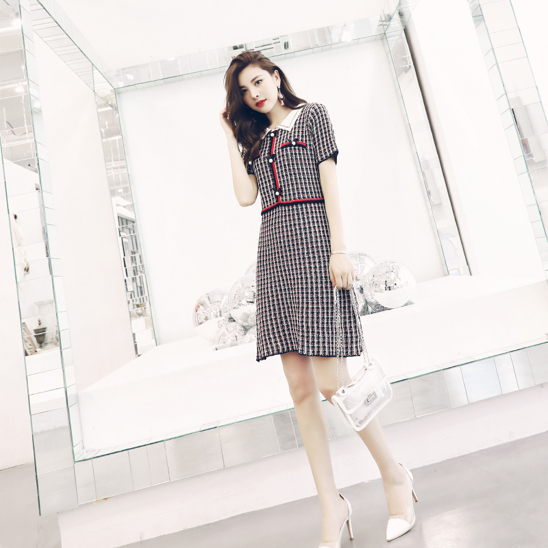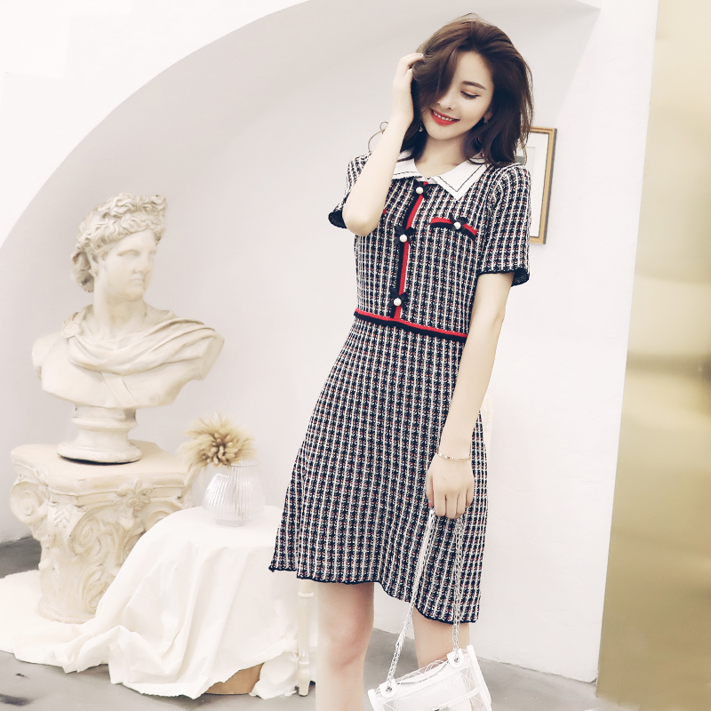 / 2018女夏新款名媛聚會針織收腰polo裙子港味復古中長款chic連衣裙