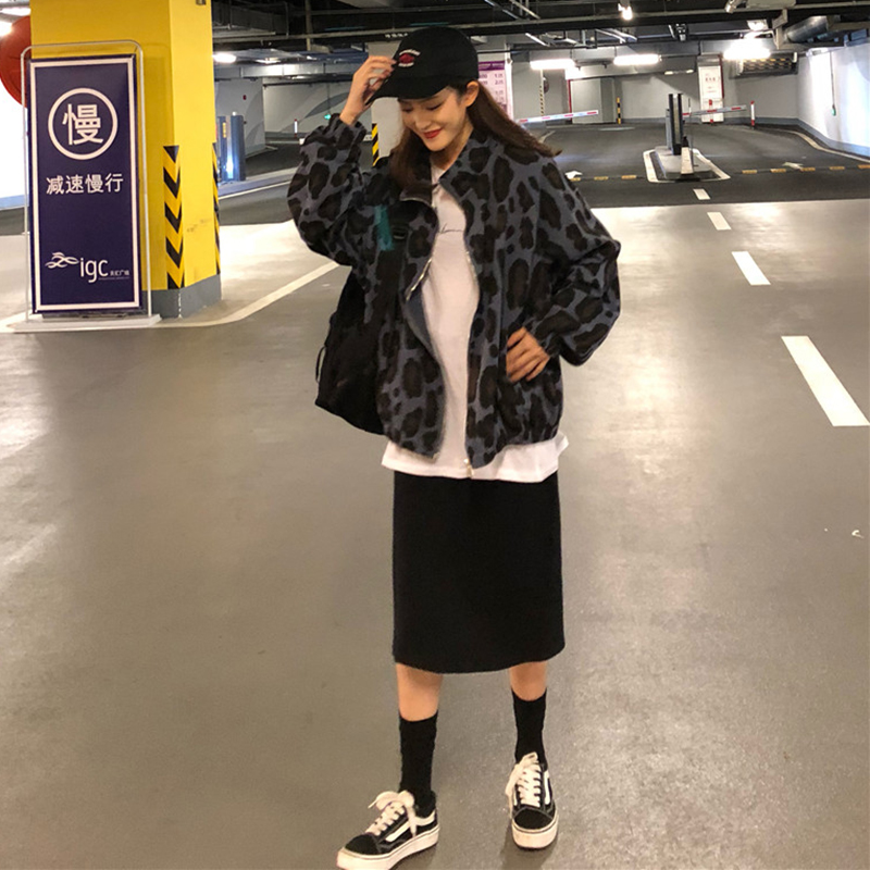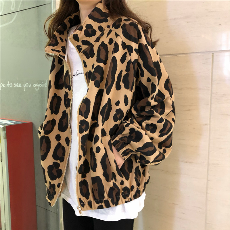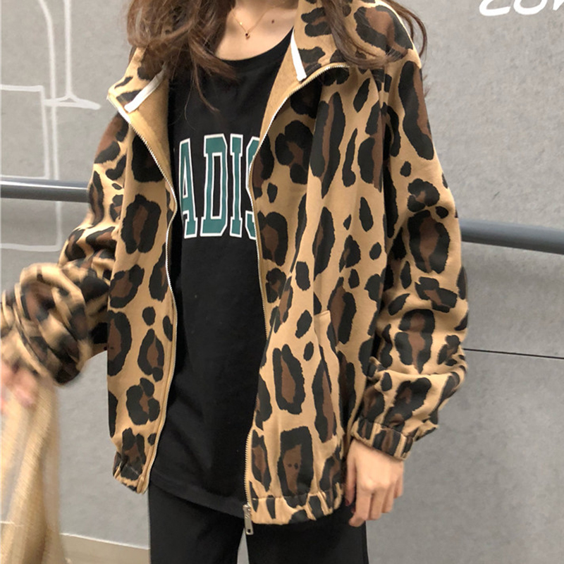豹紋外套開衫秋裝女2018新款復古寬松長袖風衣學生休閑時尚上衣潮