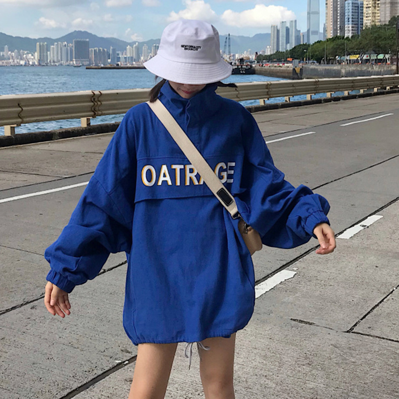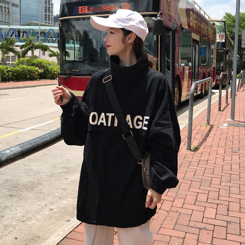 / 秋裝女新款韓版學生泡泡長袖印花衛衣寬松立領上衣帥氣中長外套潮
