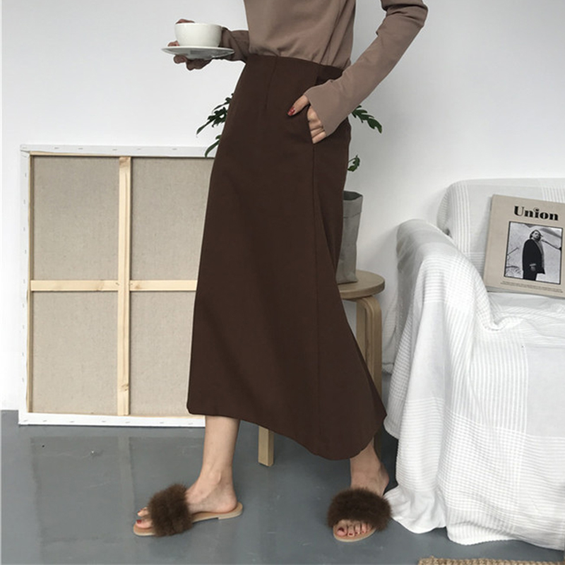 簡約黑裙子秋裝女2018新款韓版時尚高腰半身裙學生休閑中長A字裙