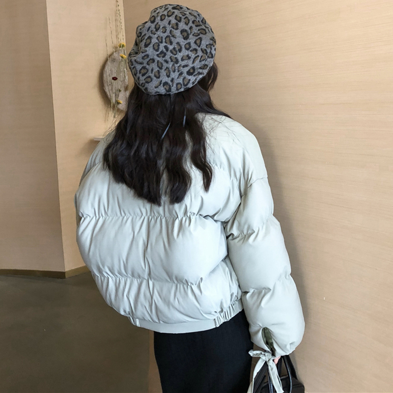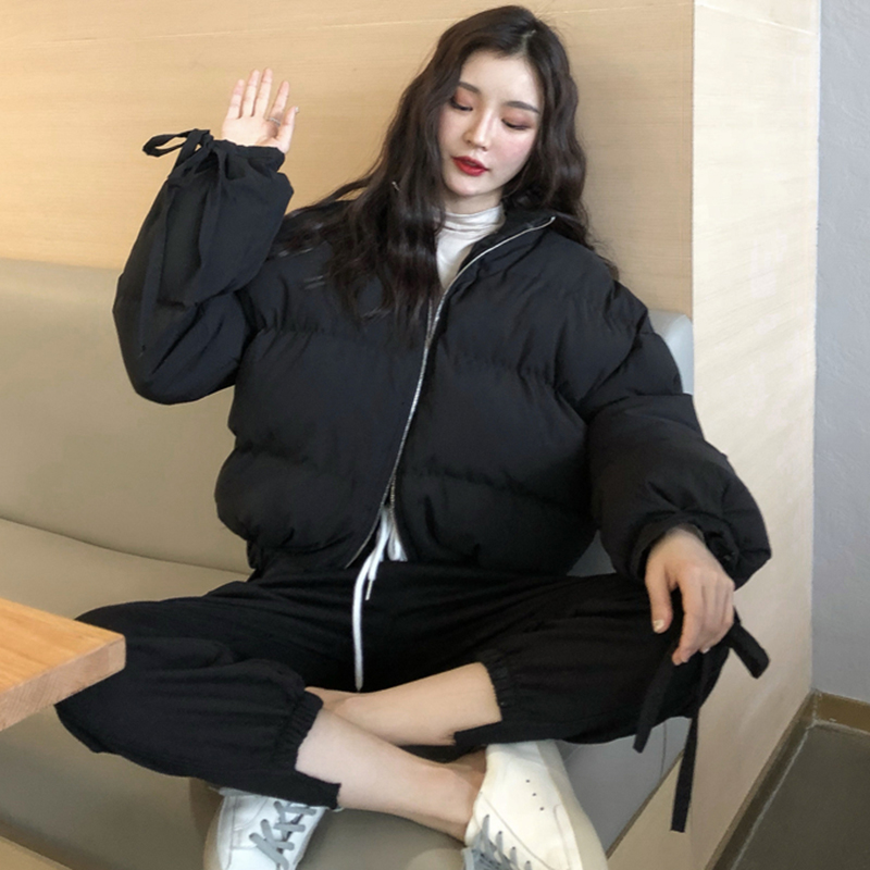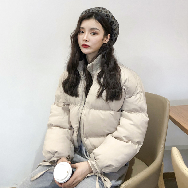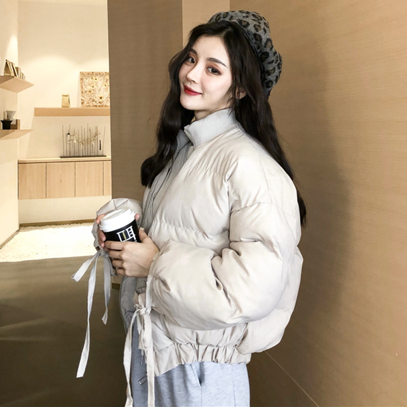 寬松時尚棉襖2018冬季女裝新款系帶長袖面包服短外套學生黑色棉衣