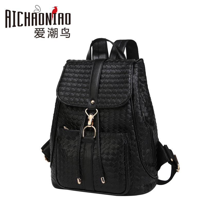 編織雙肩包女韓版pu軟皮背包時尚個性百搭歐美女士包包新款潮