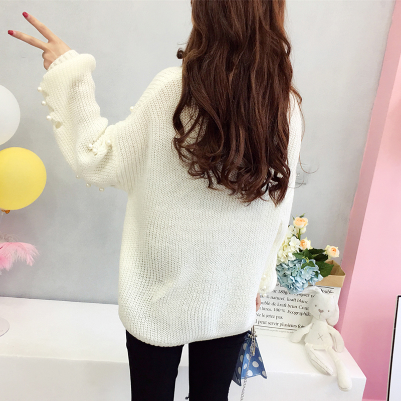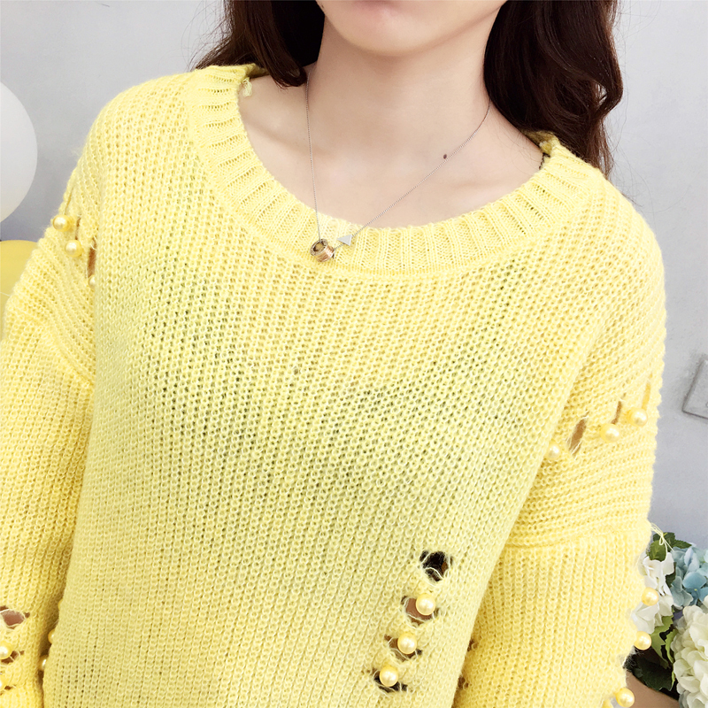 / 慵懶風鏤空破洞透視針織衫女秋冬裝2018新款韓版寬松釘珠毛衣外套