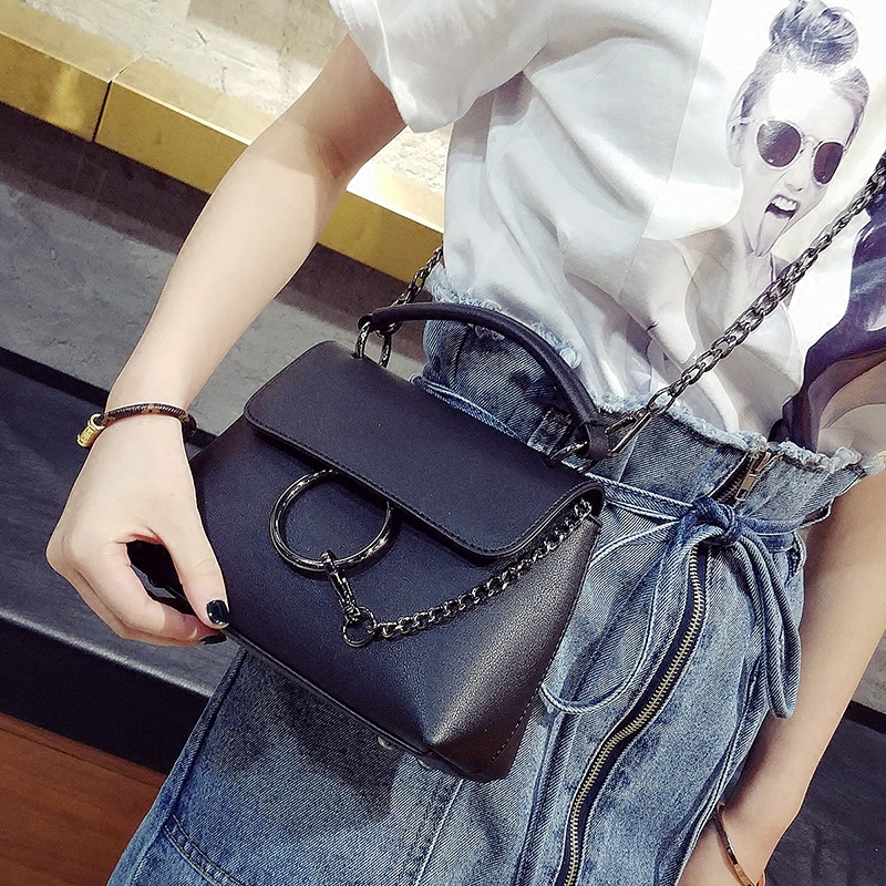 / 包包女新款潮復古手提包鏈條圓環包單肩女包韓版百搭斜挎小包