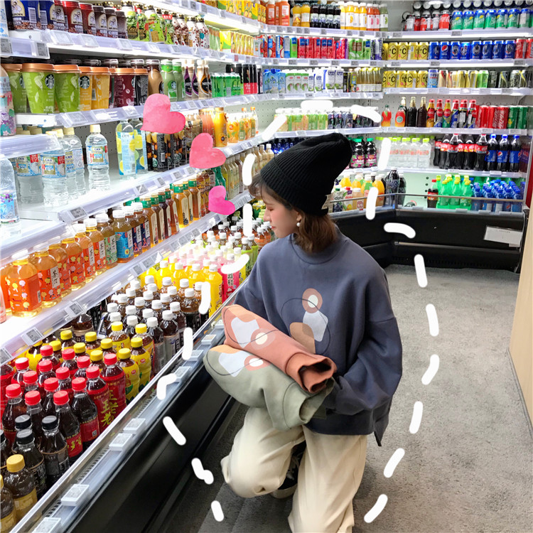 2018新款秋冬韓版復古寬松抽象圖案半高領套頭衛衣上衣外套學生女