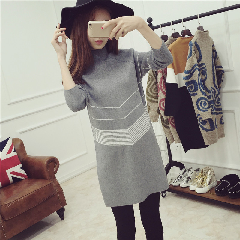 / 秋冬毛衣裙女套頭中長款高領打底衫針織連衣裙女裝秋裝新款潮