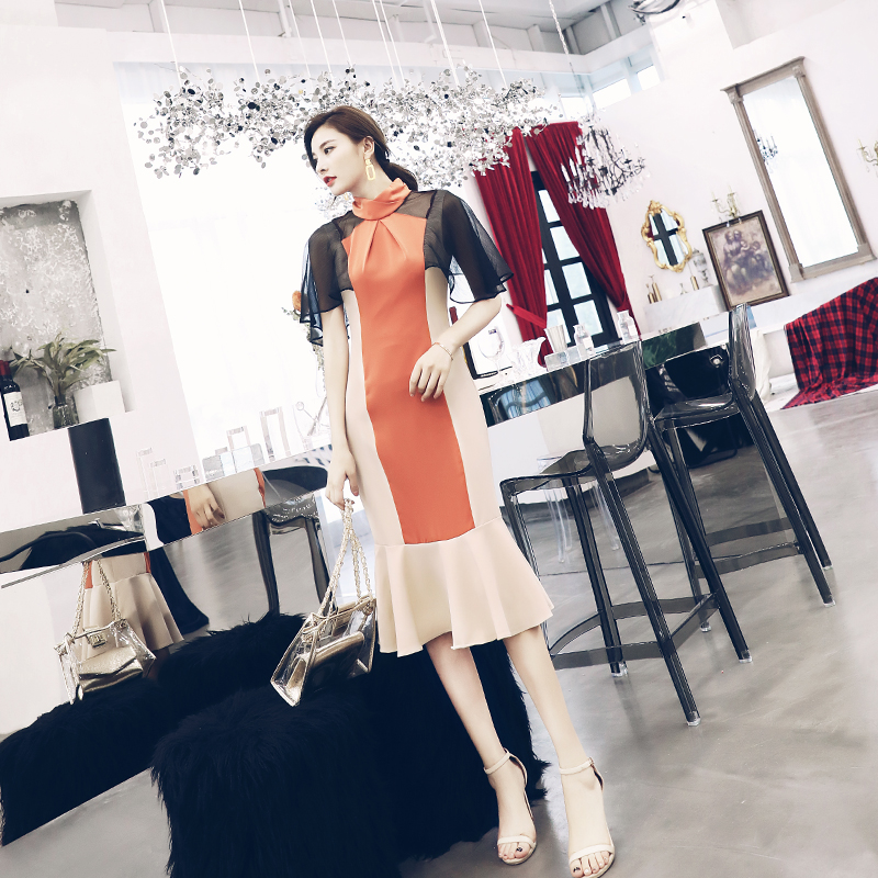 / S秀淑女氣質圓領連衣裙夏季2018新款收腰顯瘦拼接時尚中長款裙子