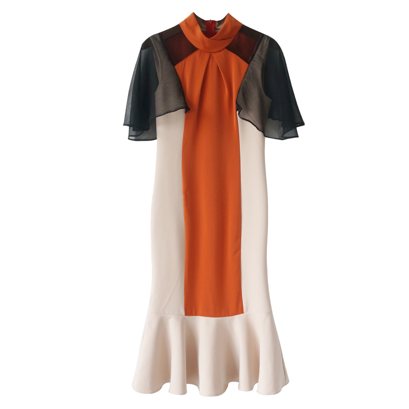 S秀淑女氣質圓領連衣裙夏季2018新款收腰顯瘦拼接時尚中長款裙子