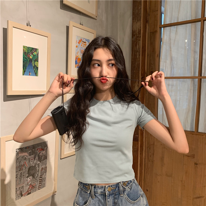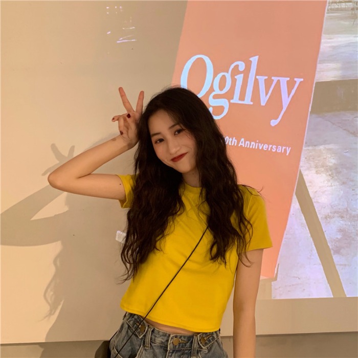 馨幫幫 港風少女小清新糖果色T恤韓版百搭露肚臍短款打底上衣/9色