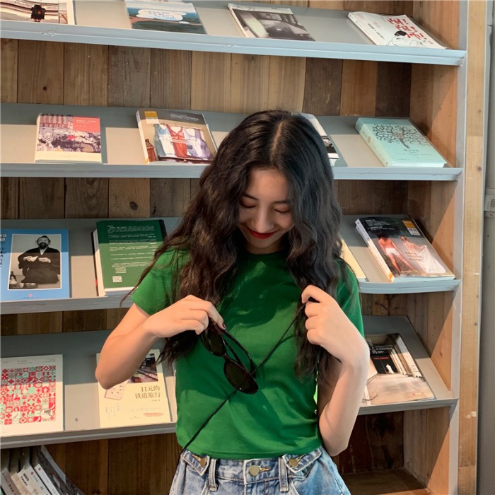 / 馨幫幫 港風少女小清新糖果色T恤韓版百搭露肚臍短款打底上衣/9色