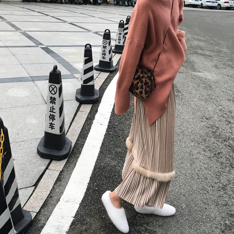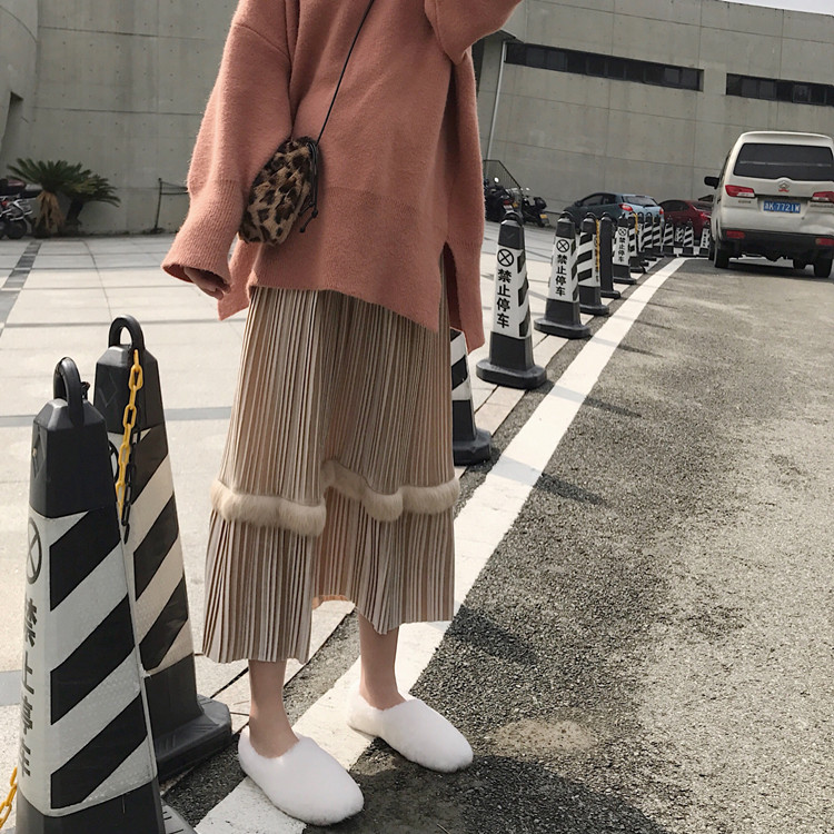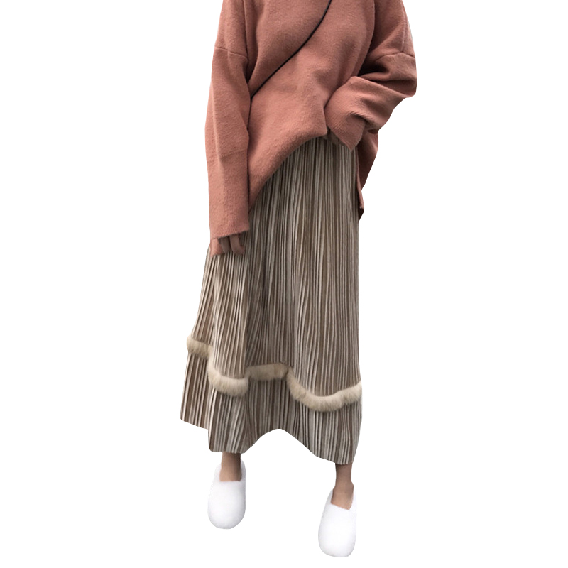 / 秋冬韓版復古寬松百搭絲絨百褶裙半身裙高腰A字裙長裙學生裙子女