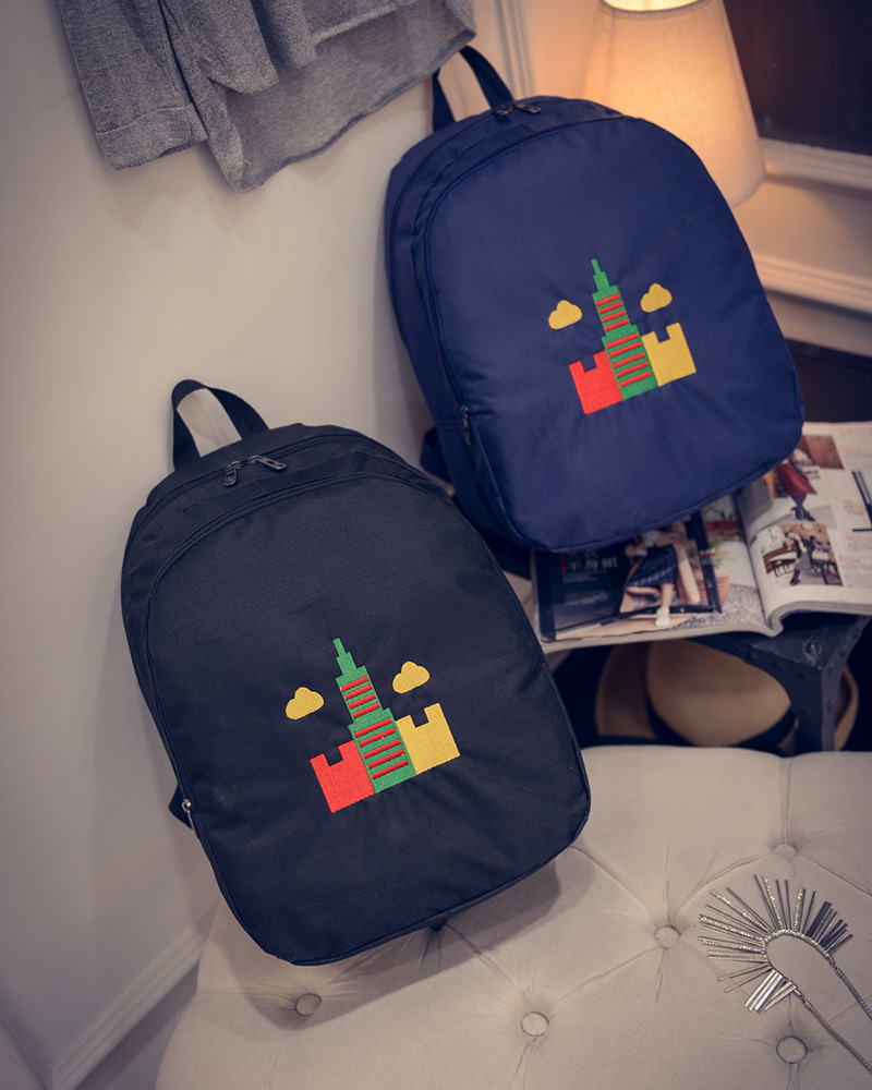 / 韓國ulzzang刺繡城堡帆布雙肩包 假如我有一座城文藝風情侶書包