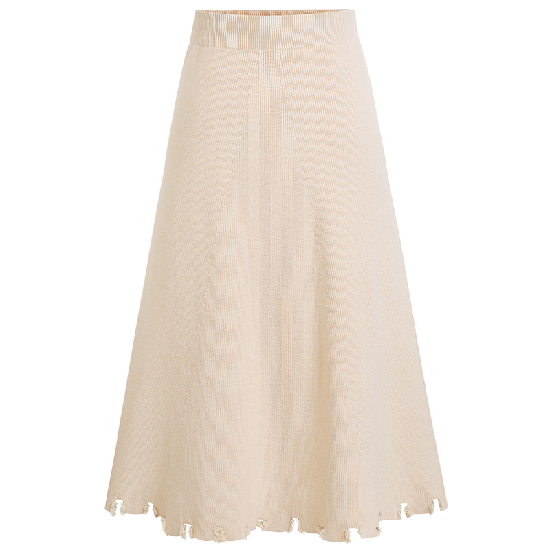 MG小象高腰針織半身裙女秋冬中長款2018新款學生不規則a字裙子潮