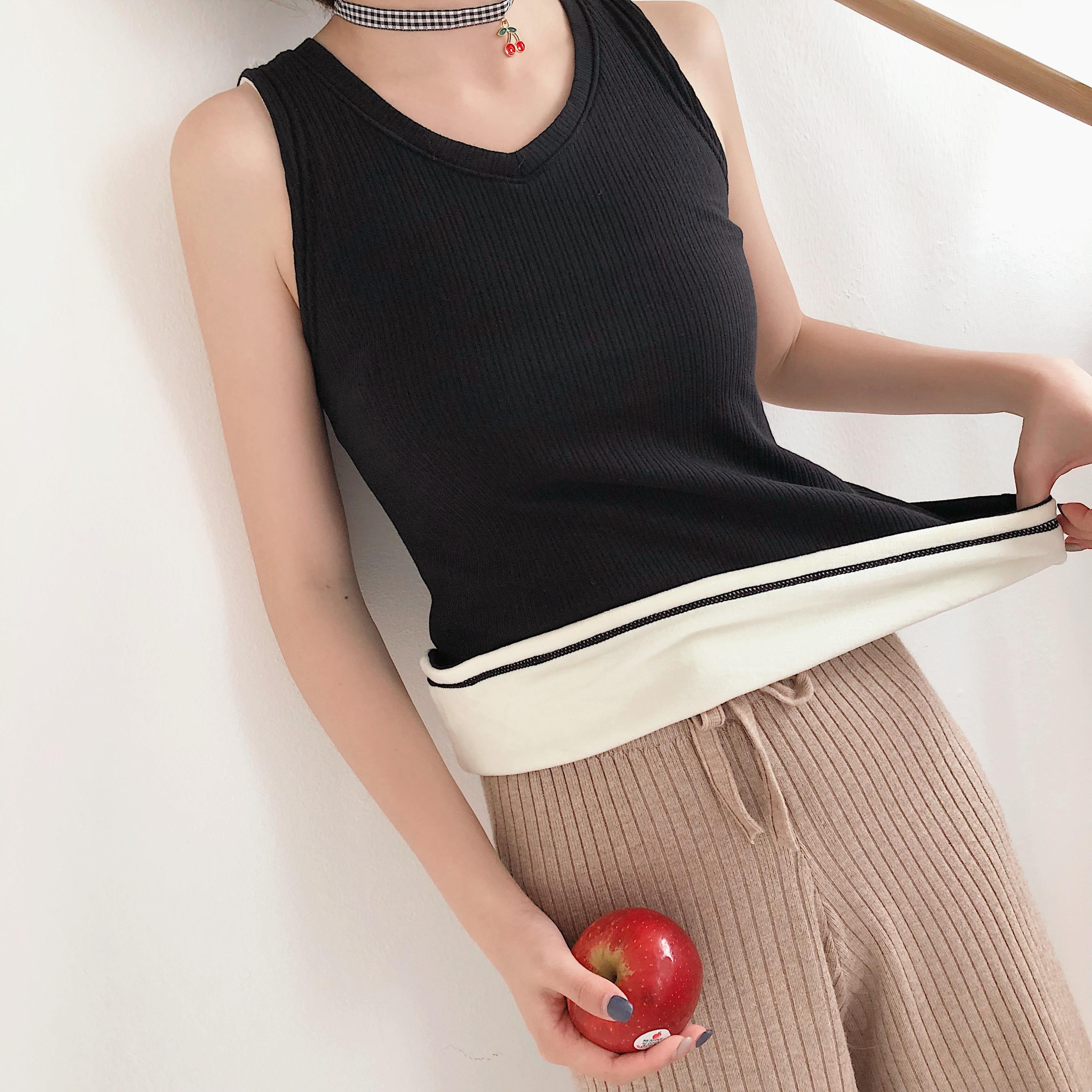 2018新款秋冬韓版加絨加厚保暖背心修身顯瘦外穿打底衫內衣上衣女