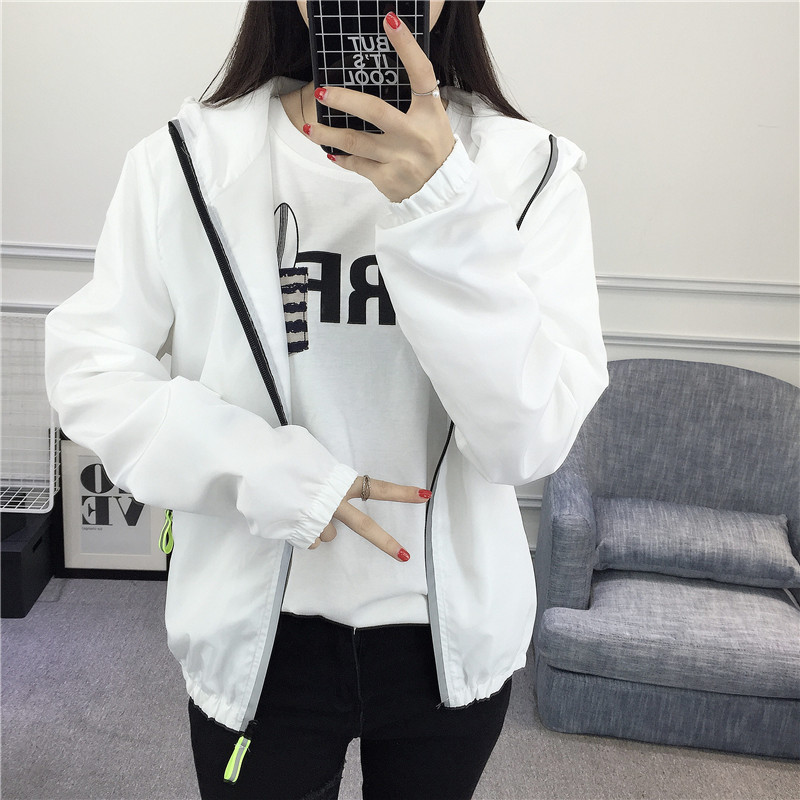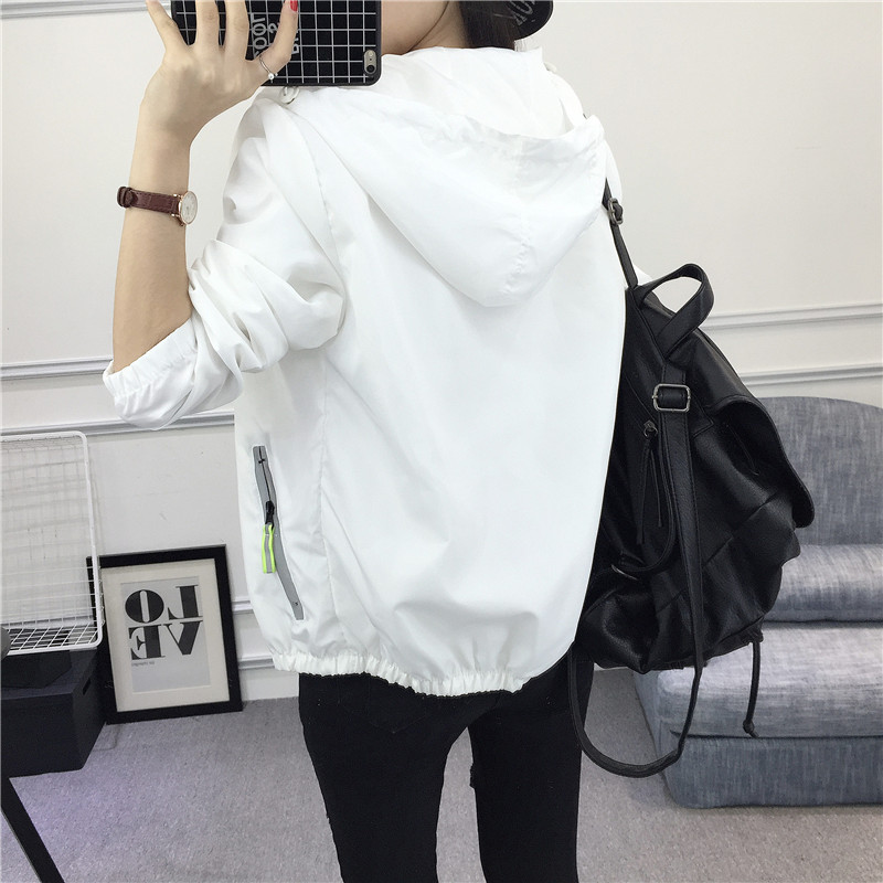 / 短款外套女2017春裝新款學生寬松連帽印花原宿風BF夾克百搭上衣潮