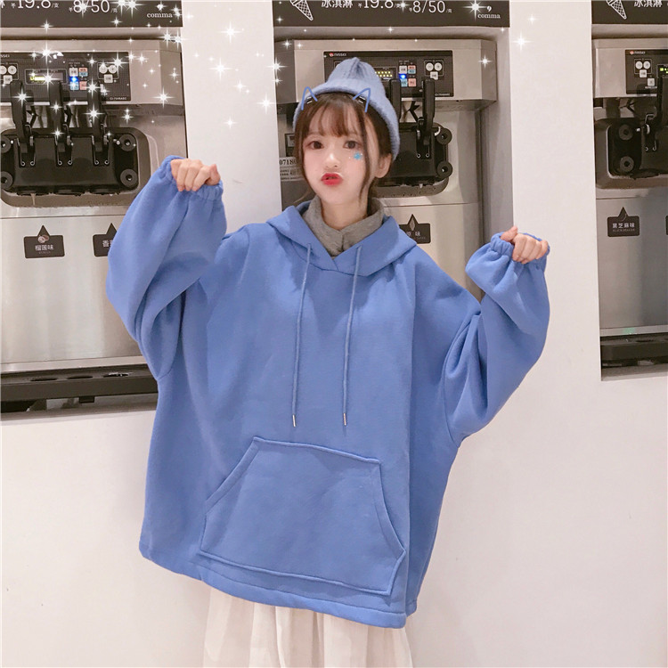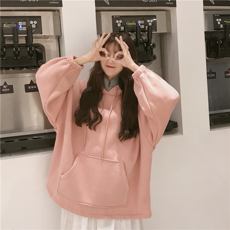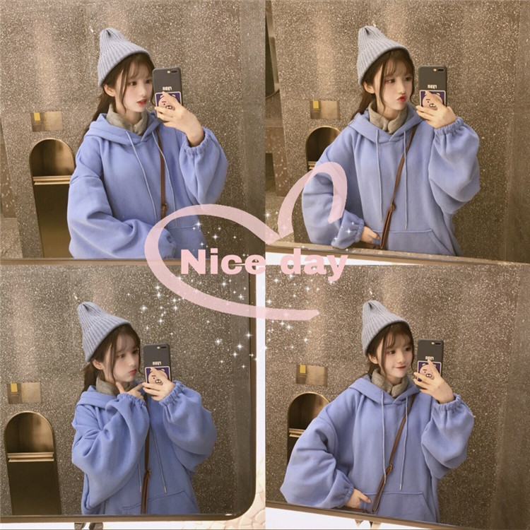 / 2018新款秋冬韓版寬松拼接高領中長款加絨加厚連帽衛衣上衣外套女