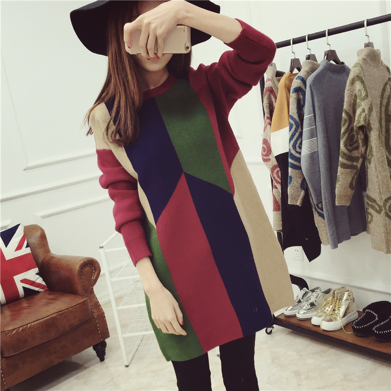 / 女裝秋裝新款潮長款毛衣女秋冬套頭針織衫打底連衣裙春秋外套