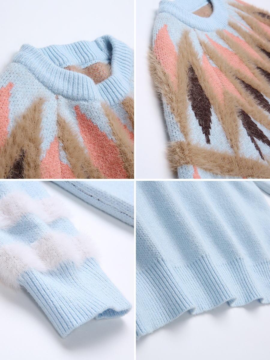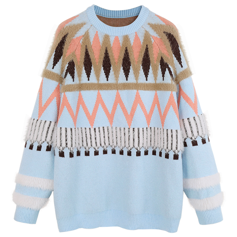 MG小象慵懶風毛衣女套頭寬松圓領針織衫新款學生甜美小清新上衣潮