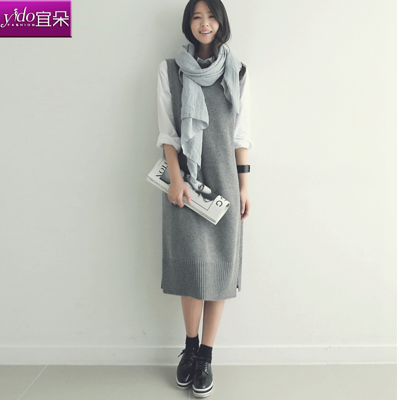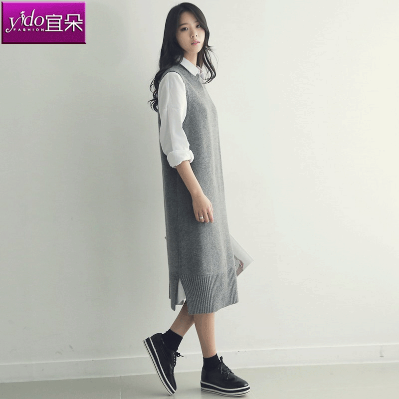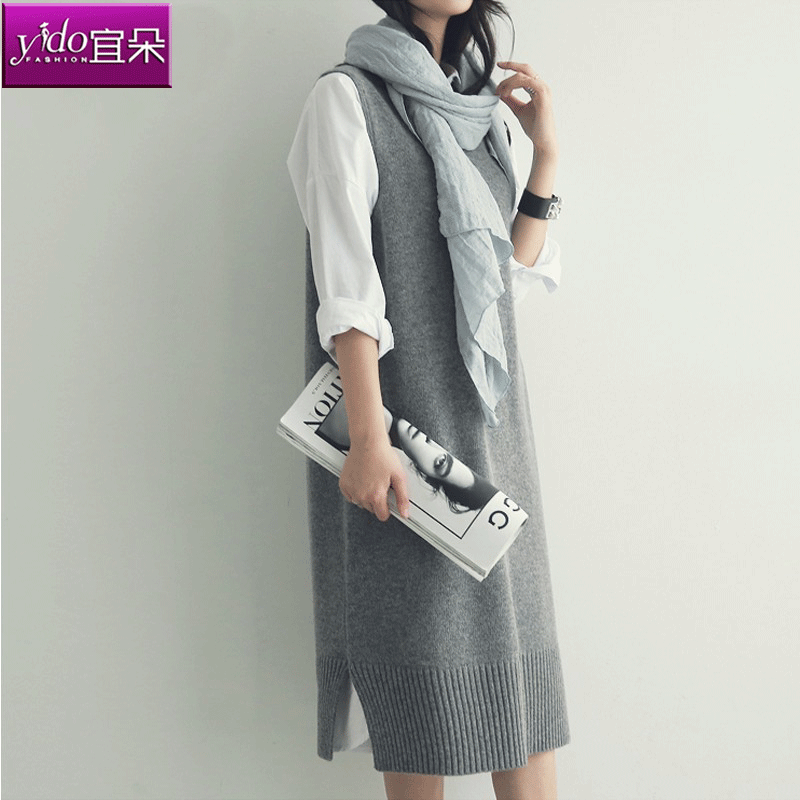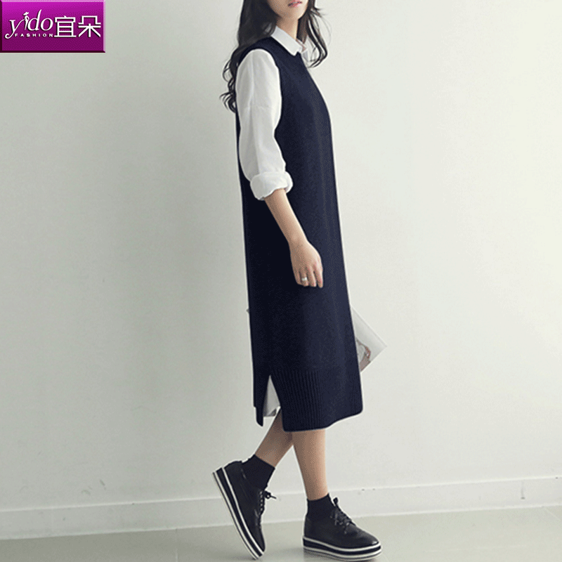 / 中長款毛衣背心女春季新款套頭針織馬甲女學生圓領針織衫長裙