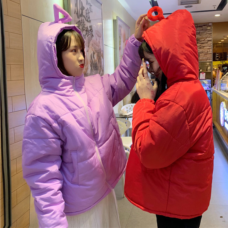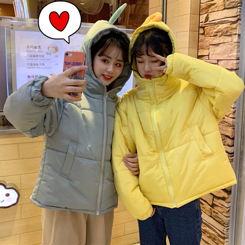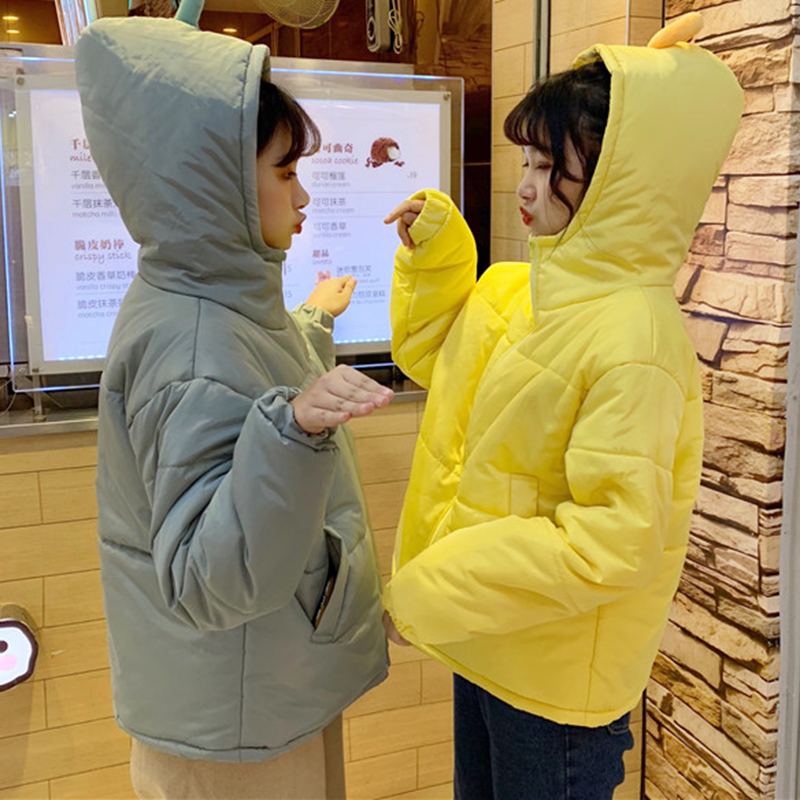 寬松連帽棉襖2018冬季女裝新款加厚面包服夾棉外套學院風純色棉衣