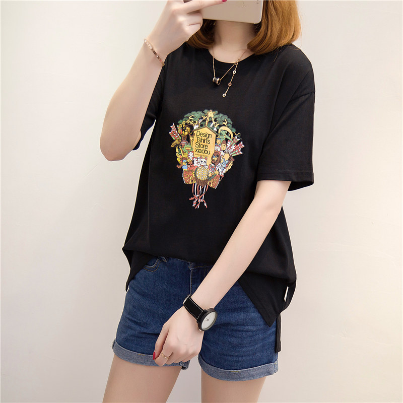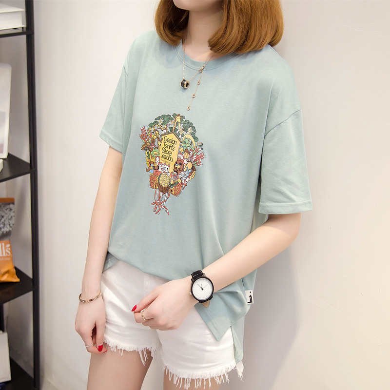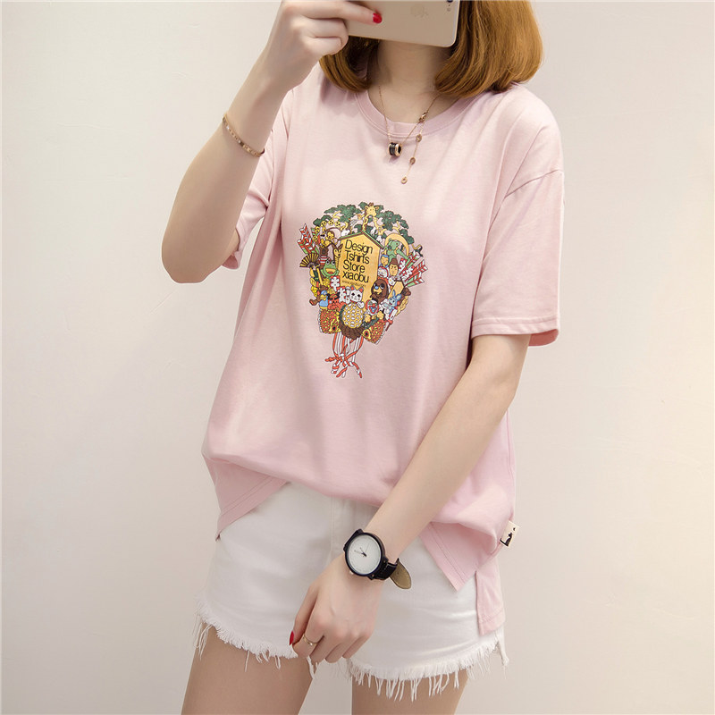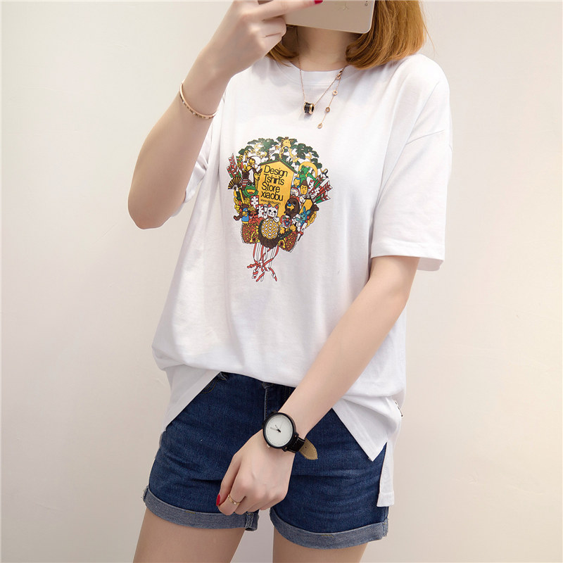 短袖上衣女春夏新款女裝白色寬松t恤女卡通體恤衫韓版百搭潮