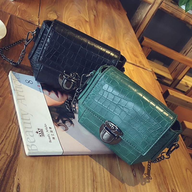 / 包包女新款鱷魚紋單肩女包小包韓版鏈條迷你小方包百搭斜挎包
