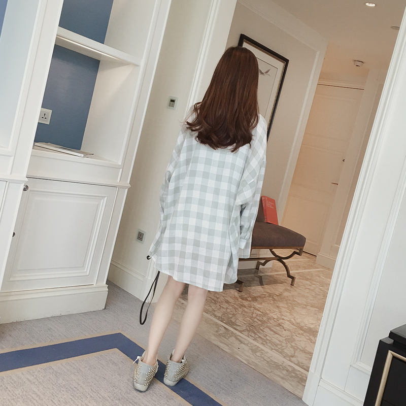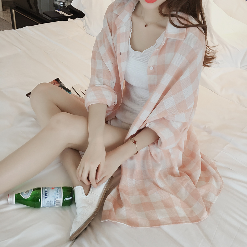 2017女春秋韓版百搭薄款長袖格子防曬襯衫寬松顯瘦休閑開衫外套