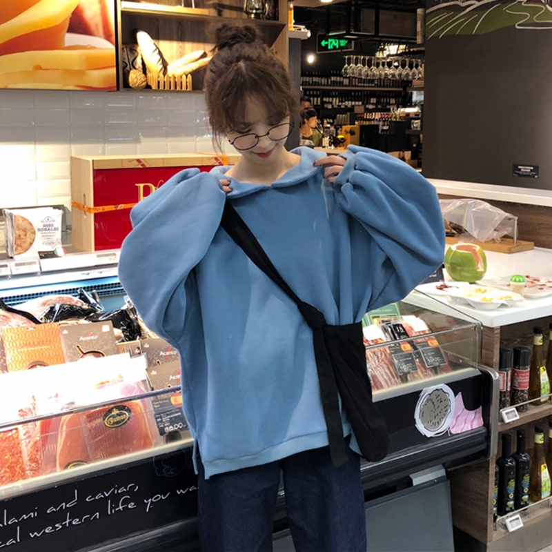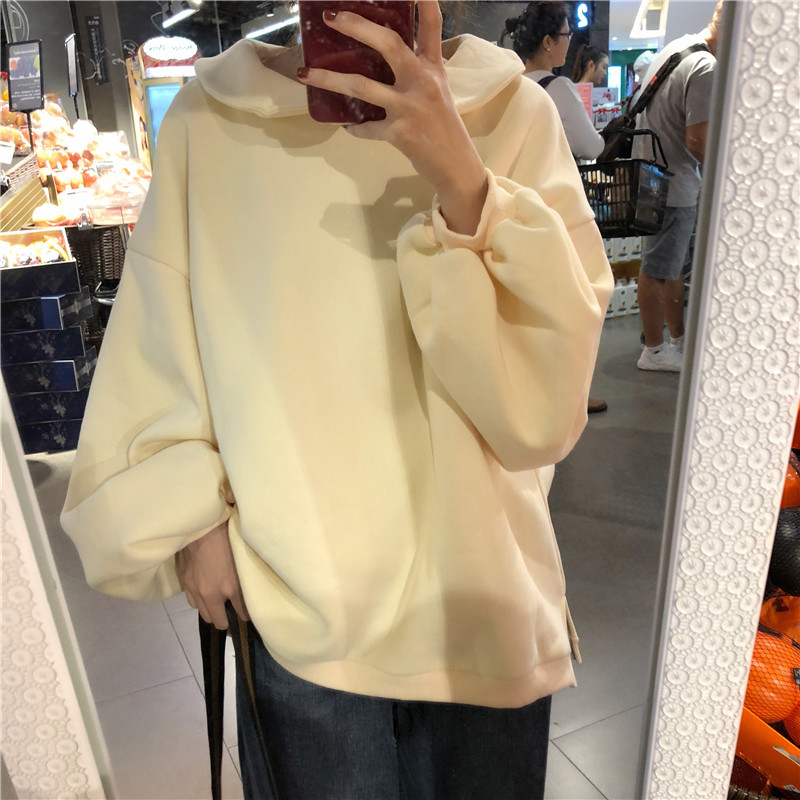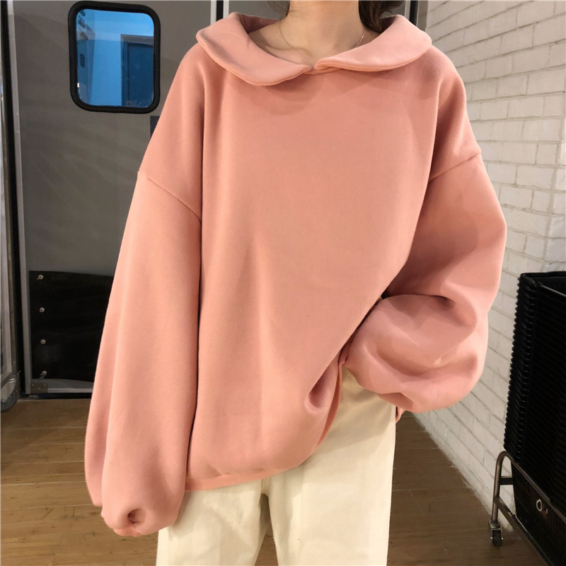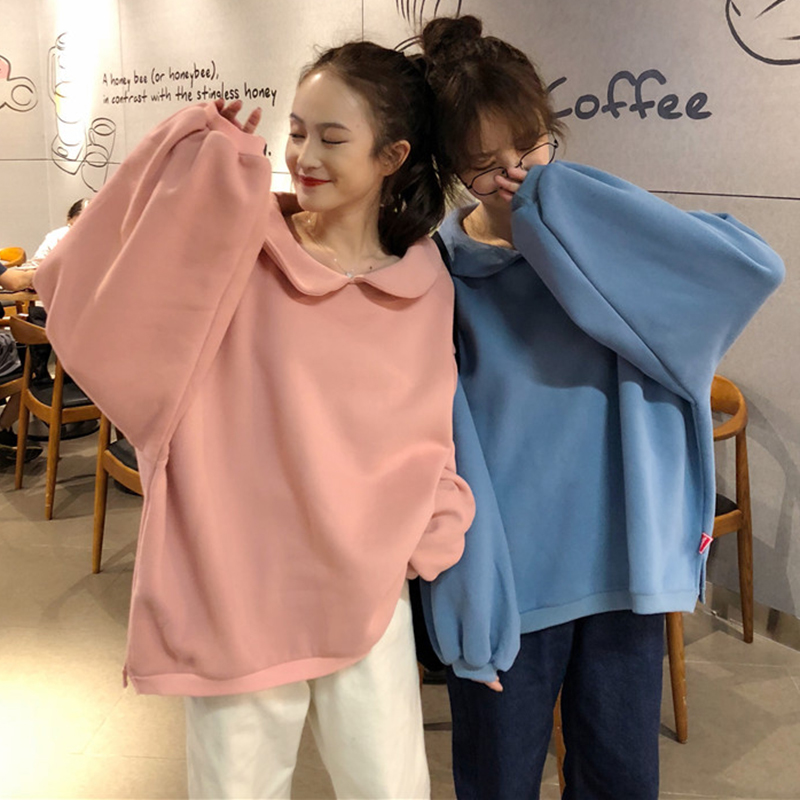 學院風娃娃領加絨衛衣女秋冬裝2018新款韓版時尚寬松燈籠長袖外套