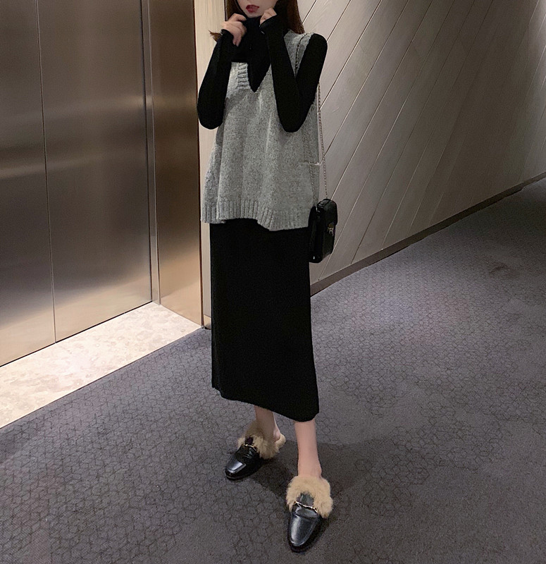 灰色馬甲|卡其馬甲|黑色連衣裙|灰色連衣裙