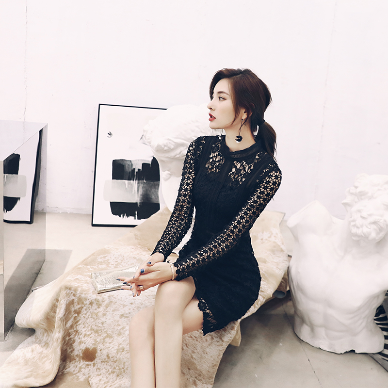 / 蕾絲長袖連衣裙秋裝女裝2018秋季新款潮韓版小個子短款氣質中長裙