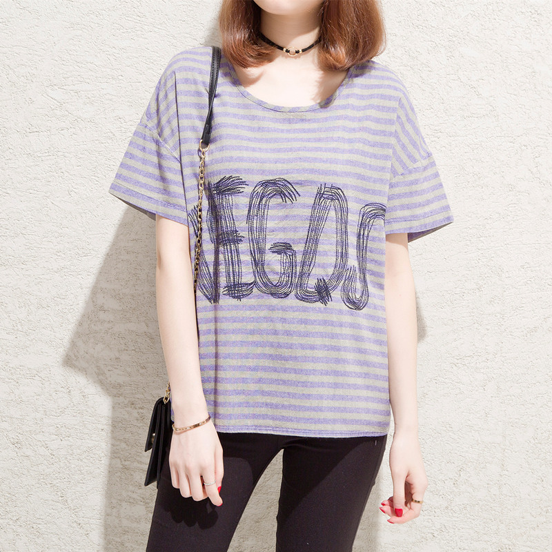 條紋t恤女韓版復古體恤衫短袖寬松小清新心機上衣女夏裝新款