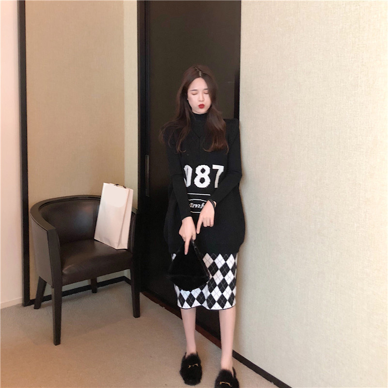 毛衣馬甲|半高領針織衫|菱格裙子