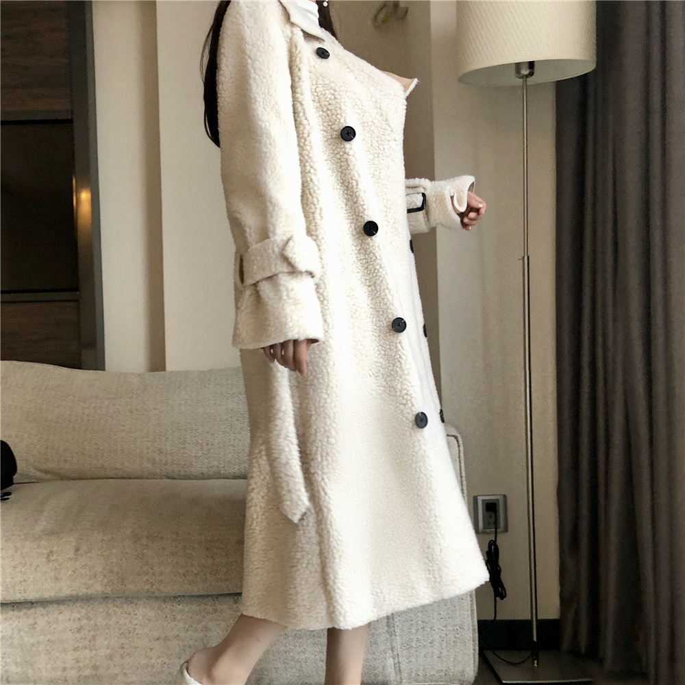 港味毛呢外套女秋冬大衣女新款2018氣質翻領保暖羊羔毛中長款外套