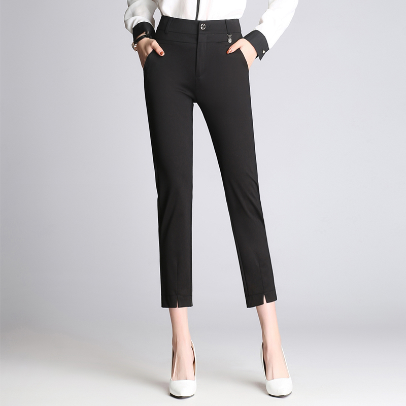 夏季小喇叭褲女開叉長褲韓版春裝新款女褲夏季薄款九分彈力微喇褲