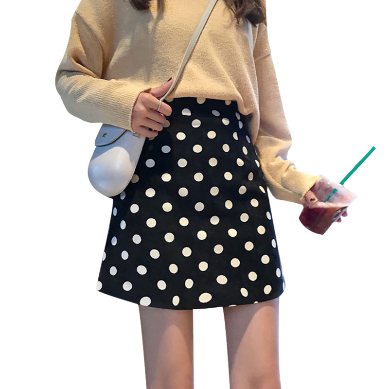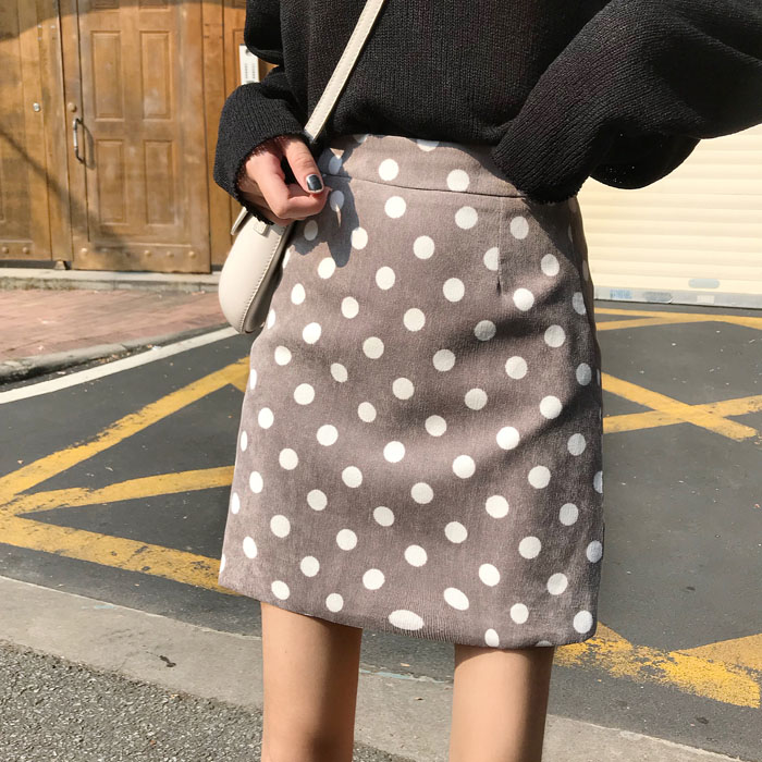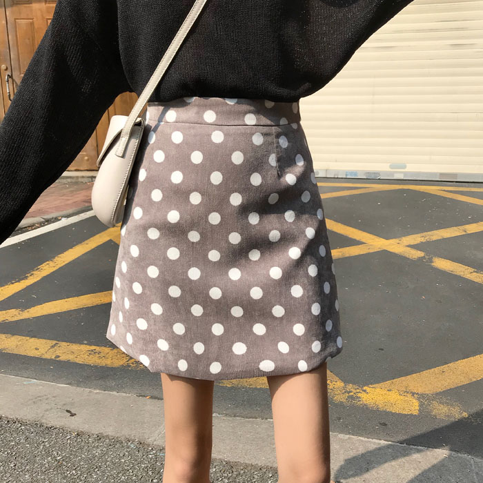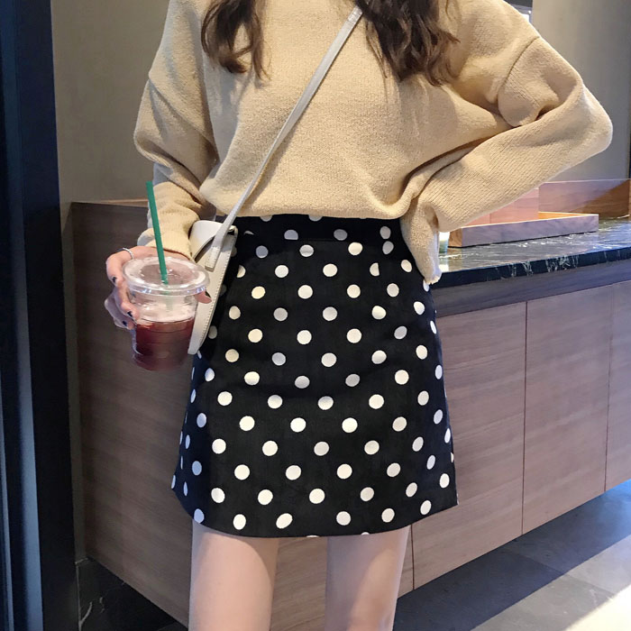 / 秋季韓版chic港味波點燈芯絨半身裙學生裙子高腰顯瘦A字裙短裙女