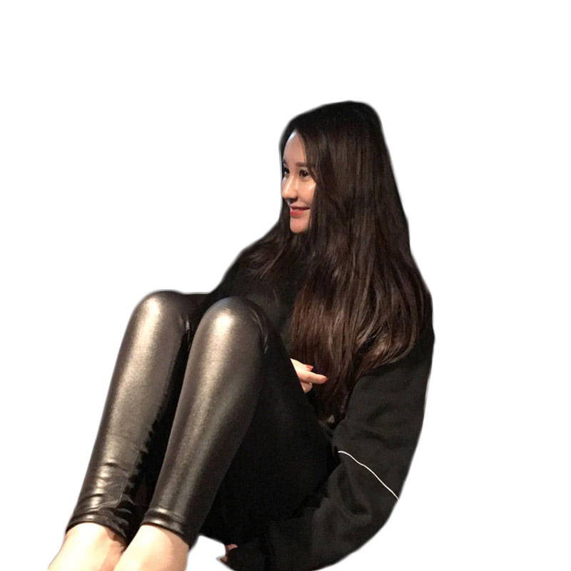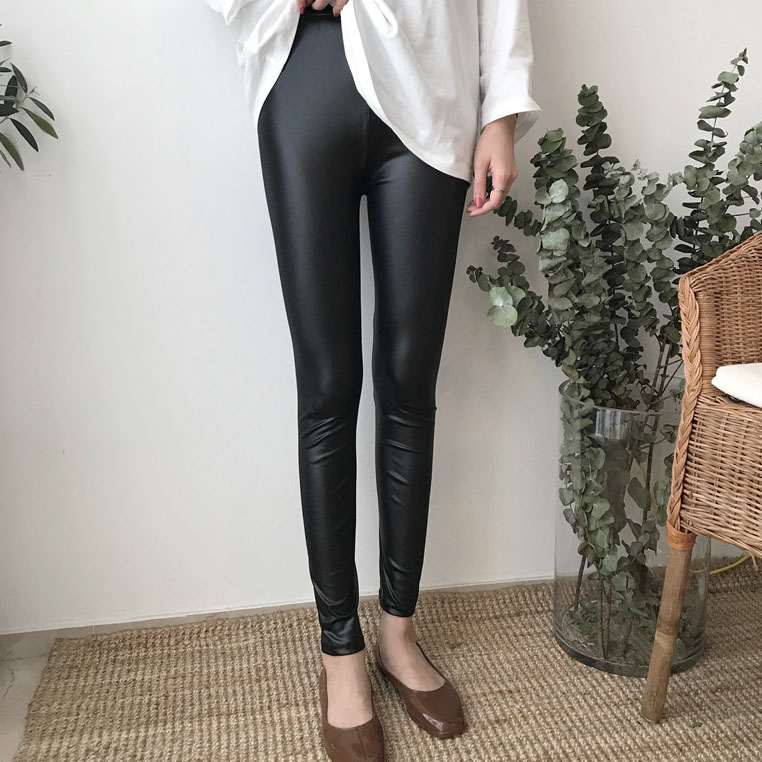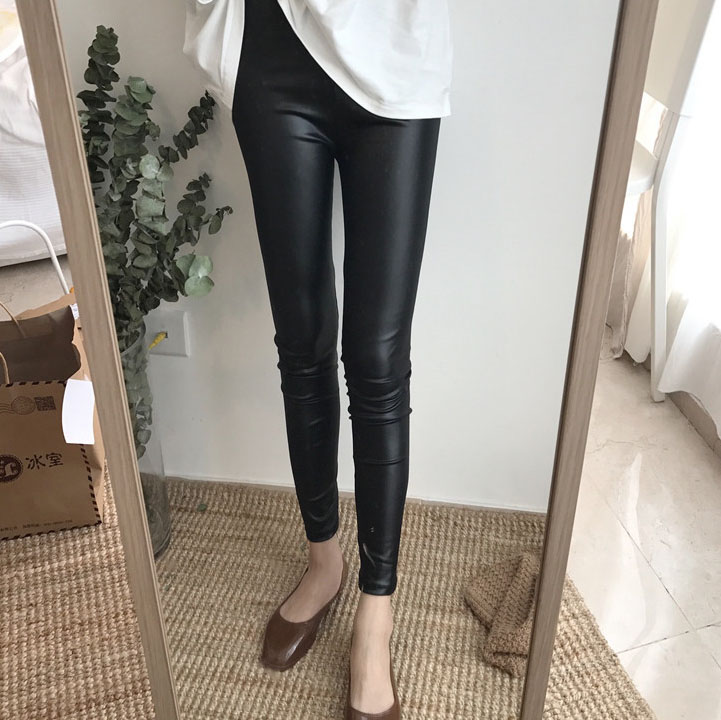 / 韓版打底外穿pu皮褲加絨加厚高腰修身黑色小腳褲女新款顯瘦緊身褲