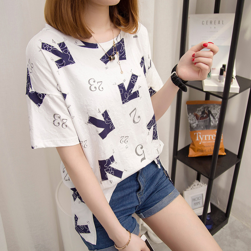 夏裝新款女裝寬松刺繡白色t恤女個性休閑打底百搭韓版體恤衫